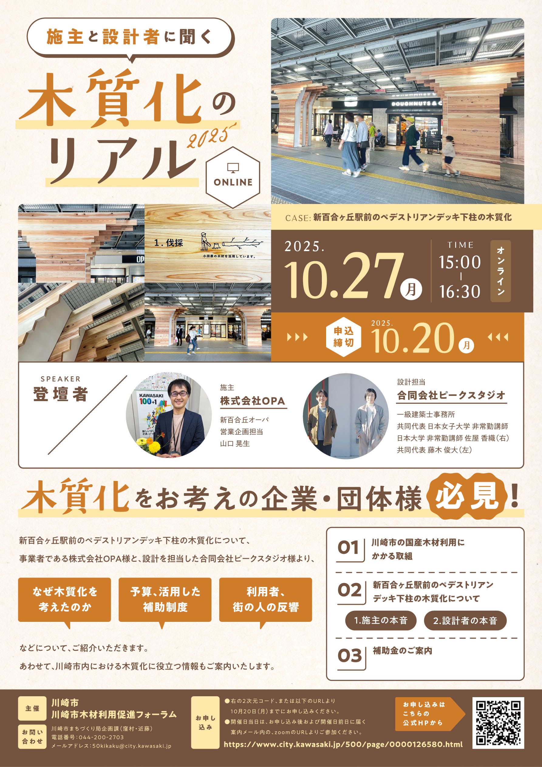 川崎市の木材活用を考える企業・団体向けのWebセミナーチラシをデザインしました。
